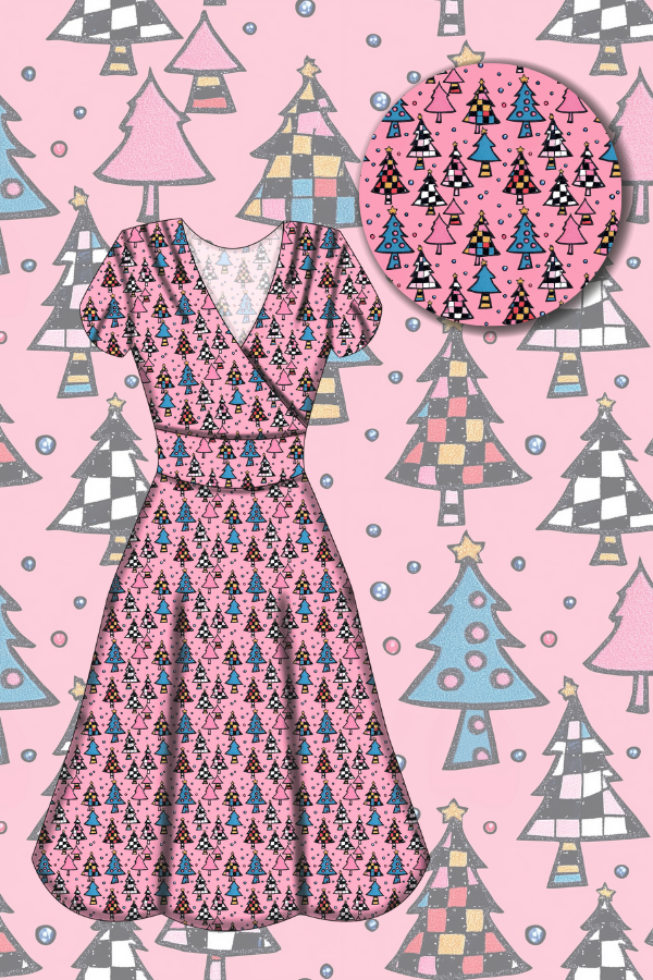 LAST DELIVERY - Mimi Swing Dress - Retro Christmas Trees - Preorder for dispatch 8th of December