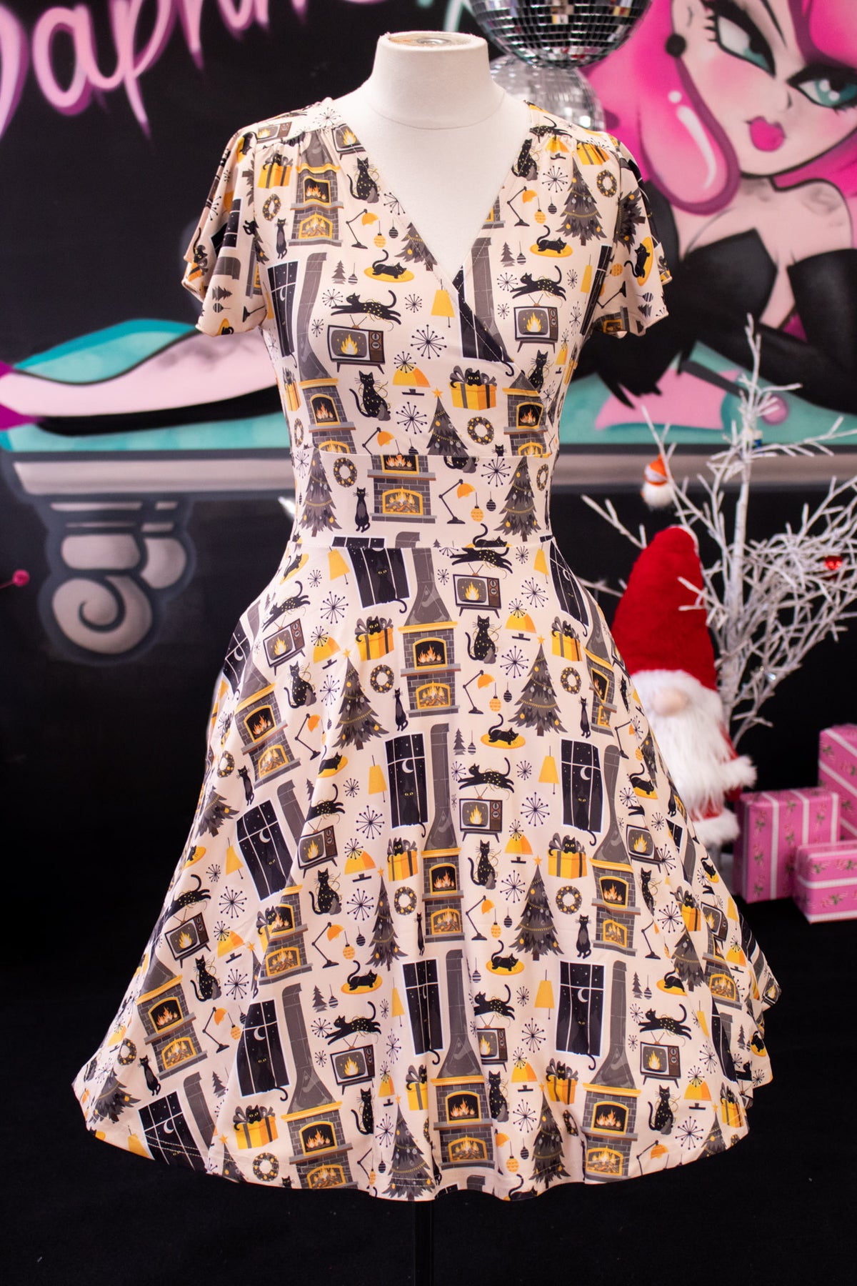 PREORDER - Maeve Swing Dress - Retro Cats Christmas - Estimate dispatch 10th of December