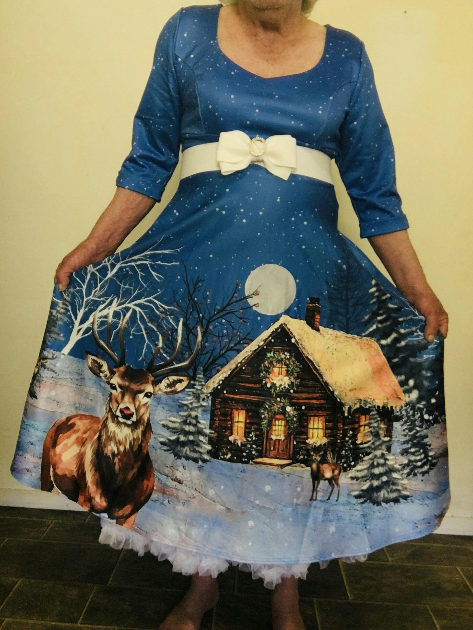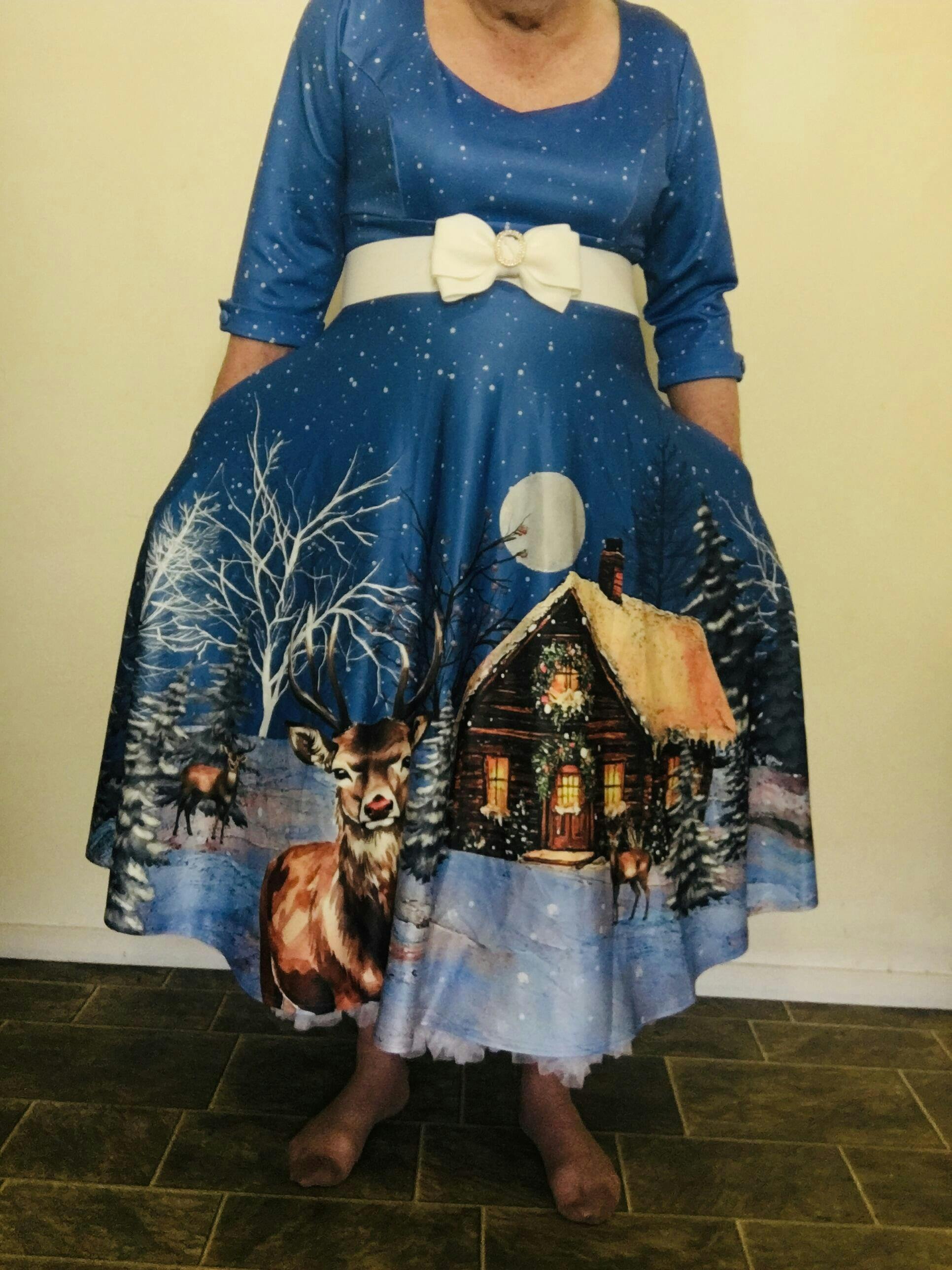 A georgous Reindeer swing dress it’s just so lovely fits me so well just can’t wait to wear this very pretty dress Christmas Day it just wonderful have given it five amazing stars love love it