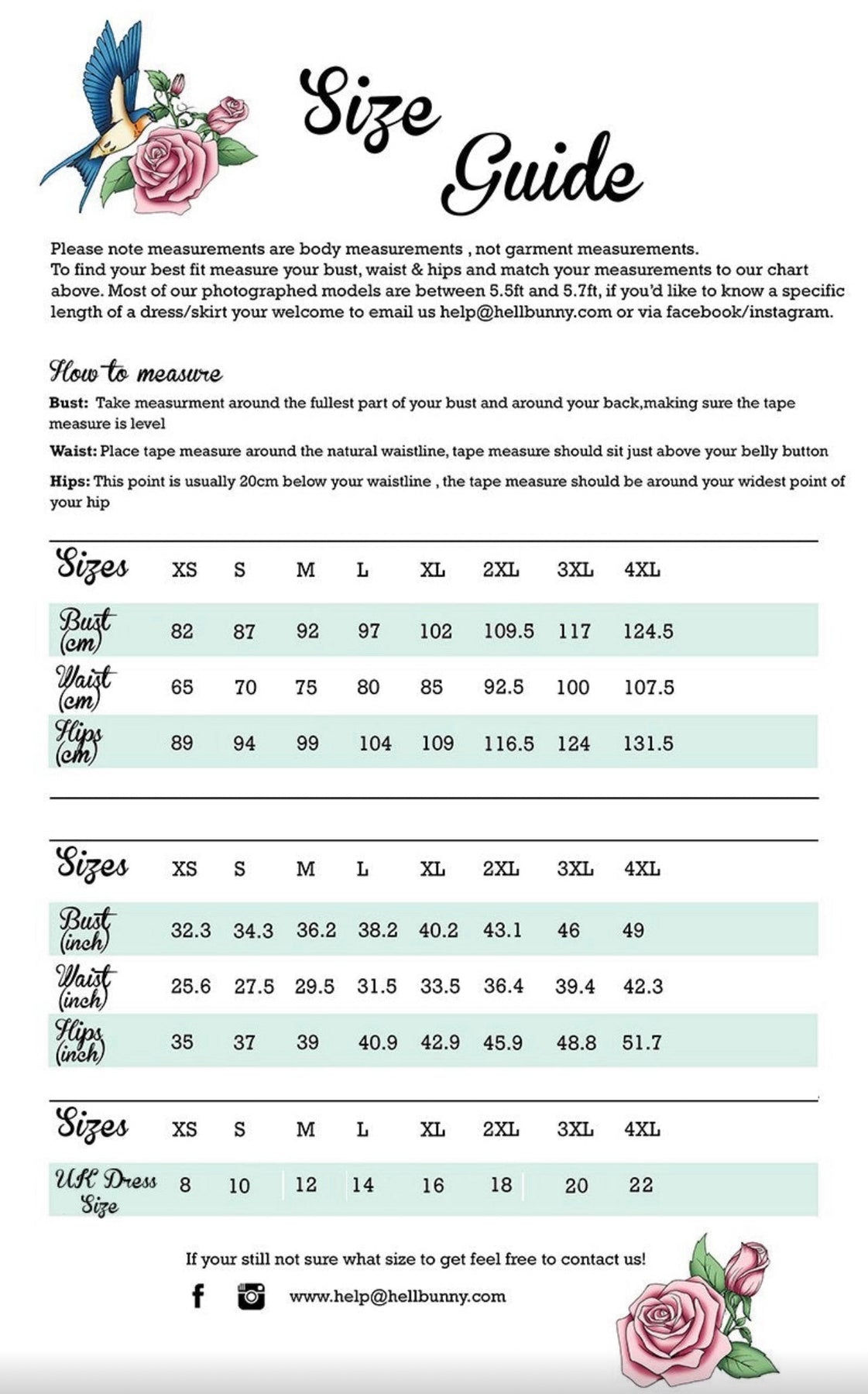 • Length of skirt from back seam is 65cm for size Small, length gradually increases per size