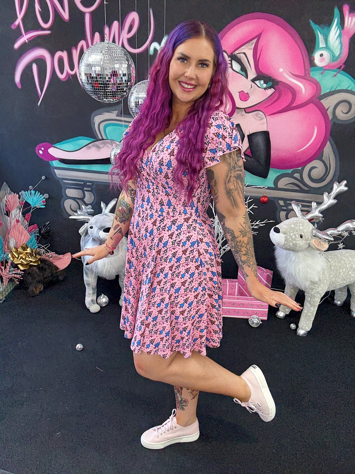 PREORDER - Maeve Swing Dress - Retro Christmas Trees - Estimate dispatch 10th of December