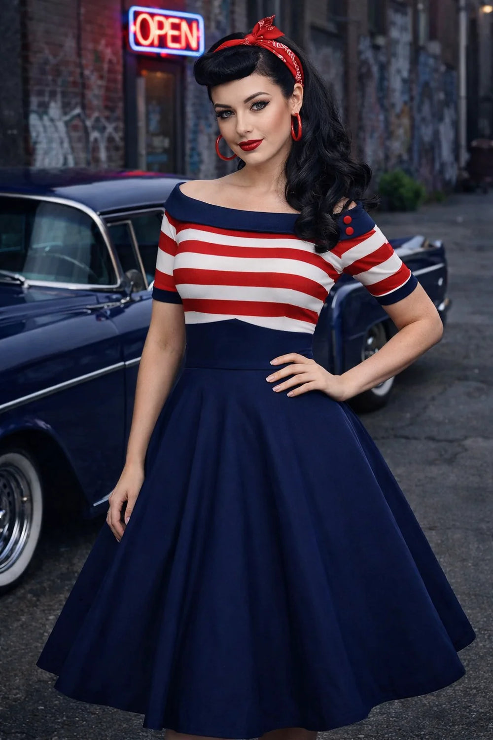 Darlene Navy And Red Nautical Swing Dress