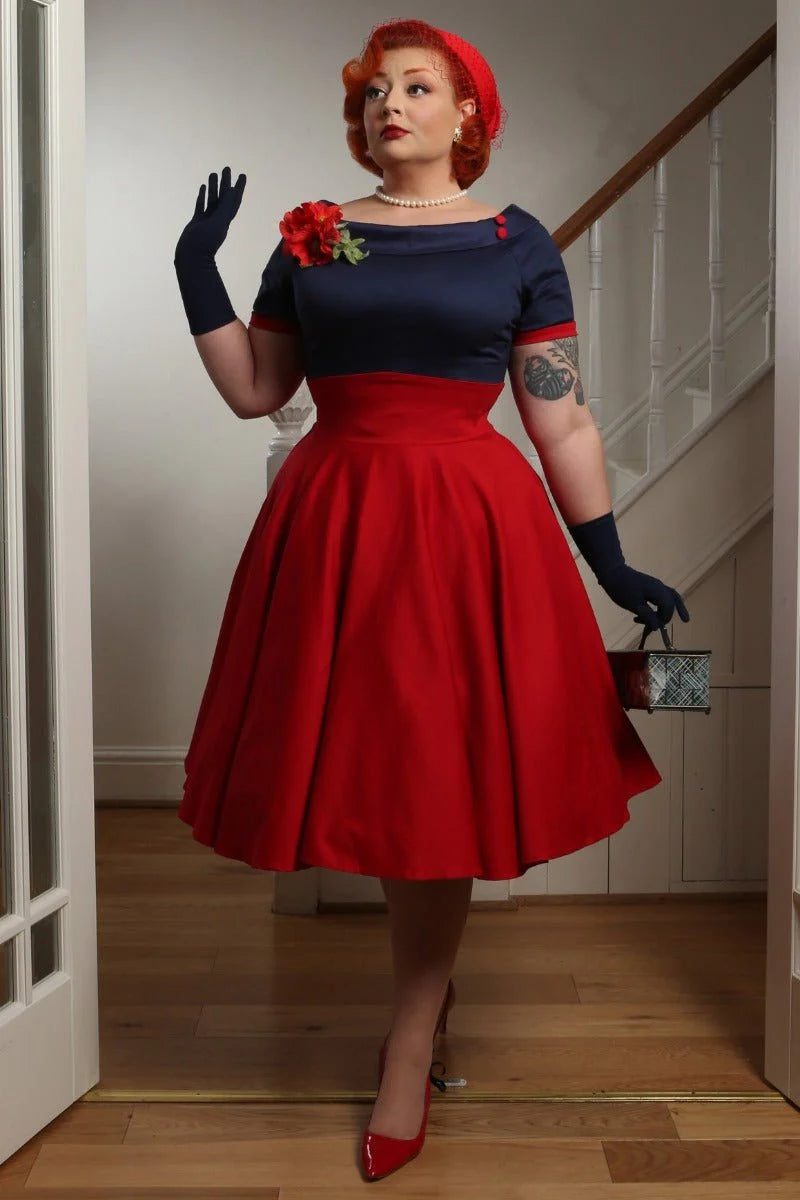 PREORDER - Darlene Navy Blue and Red Nautical Swing Dress - Expected dispatch 2nd of June