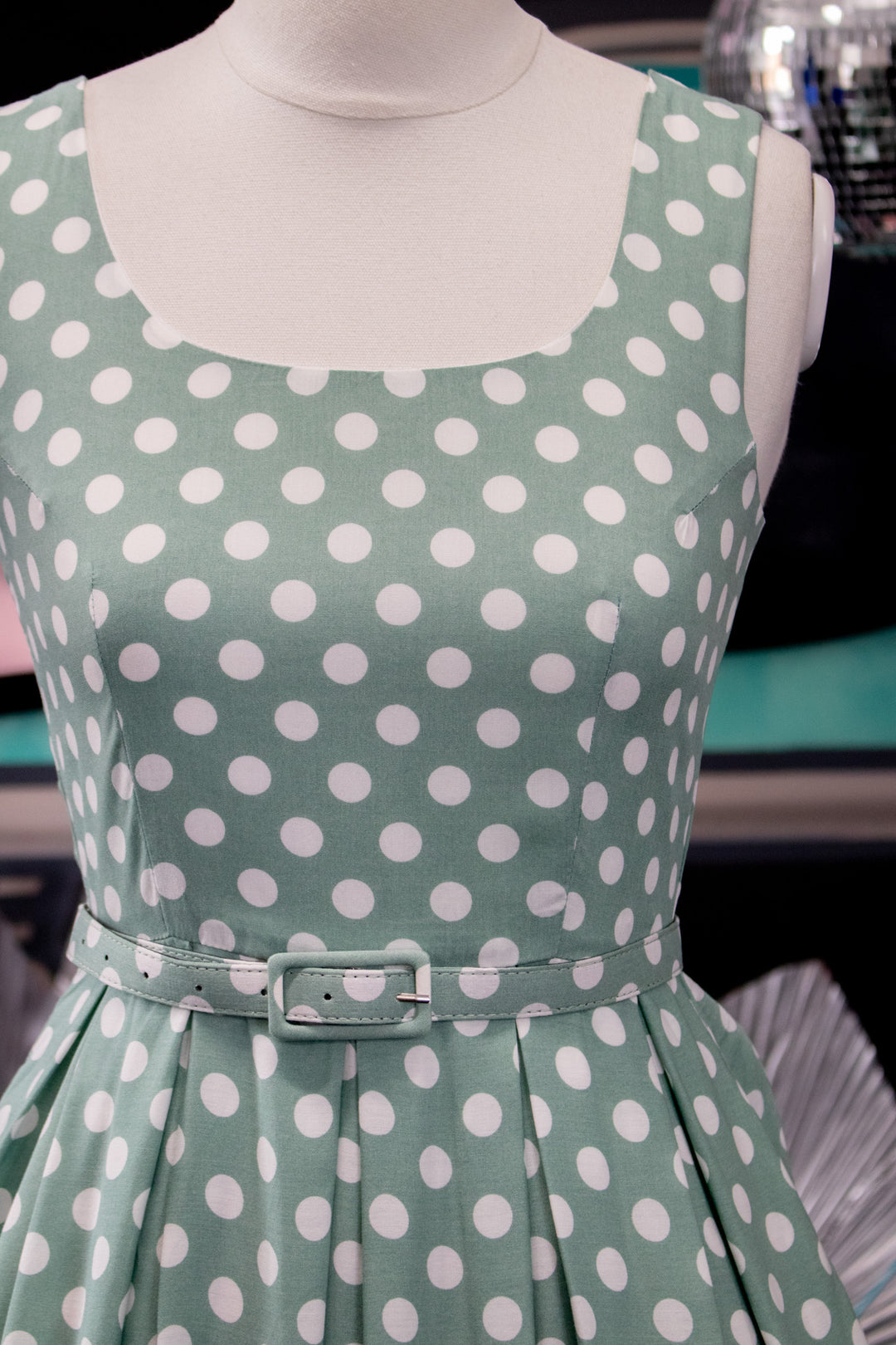 Amanda Viscose Light Green Polka Dot Swing Dress