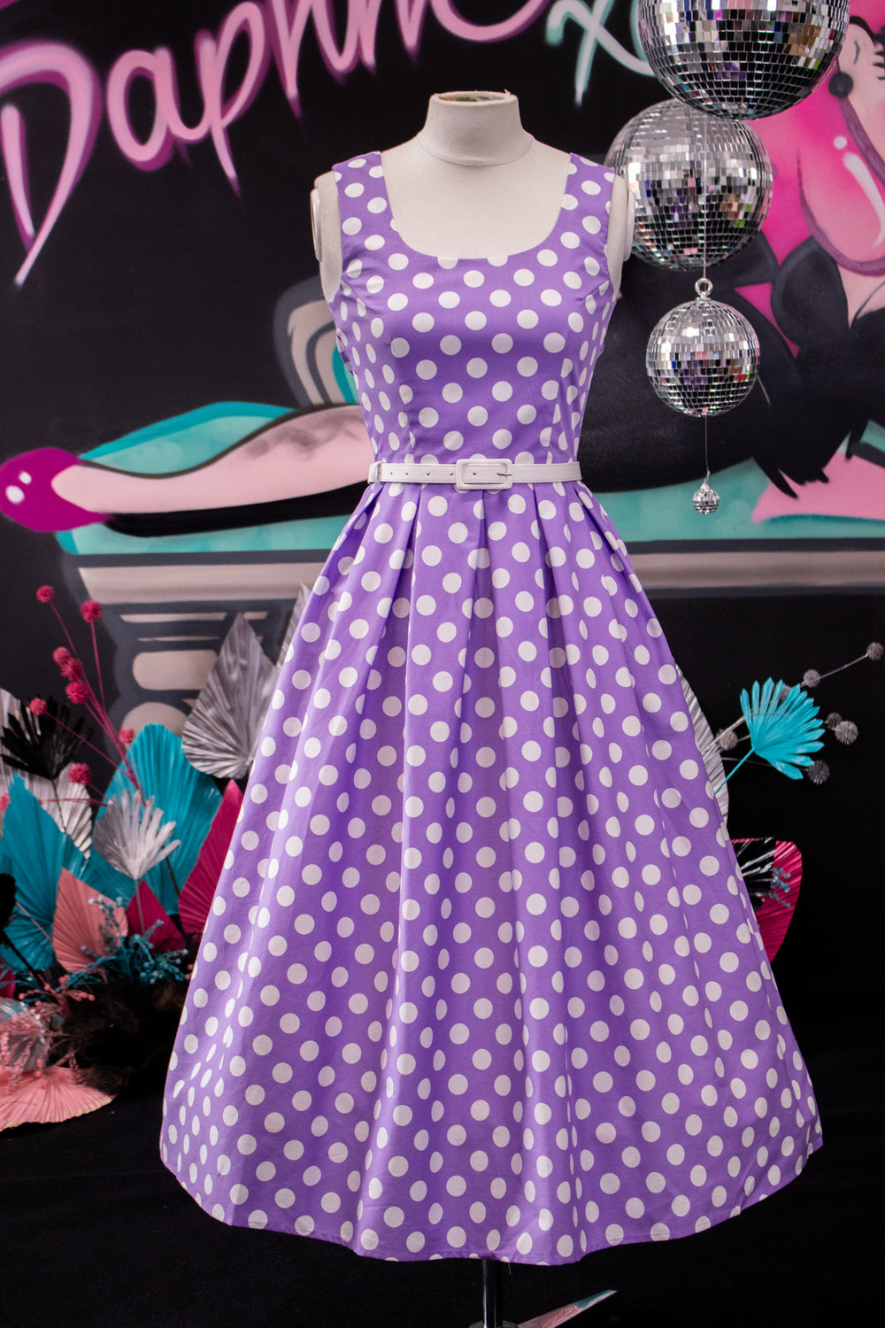 Ophelia Purple Polka Dot Midi Dress