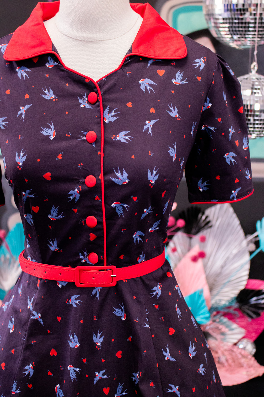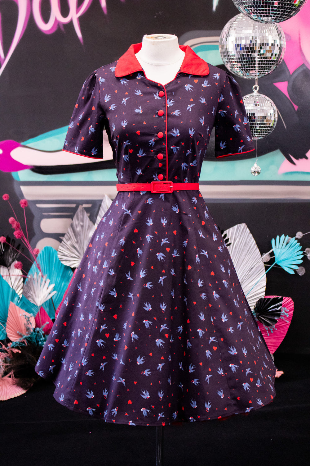 Penelope Navy Blue Heart and Swallow Dress