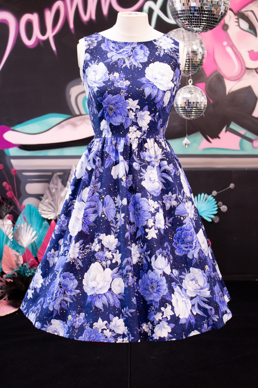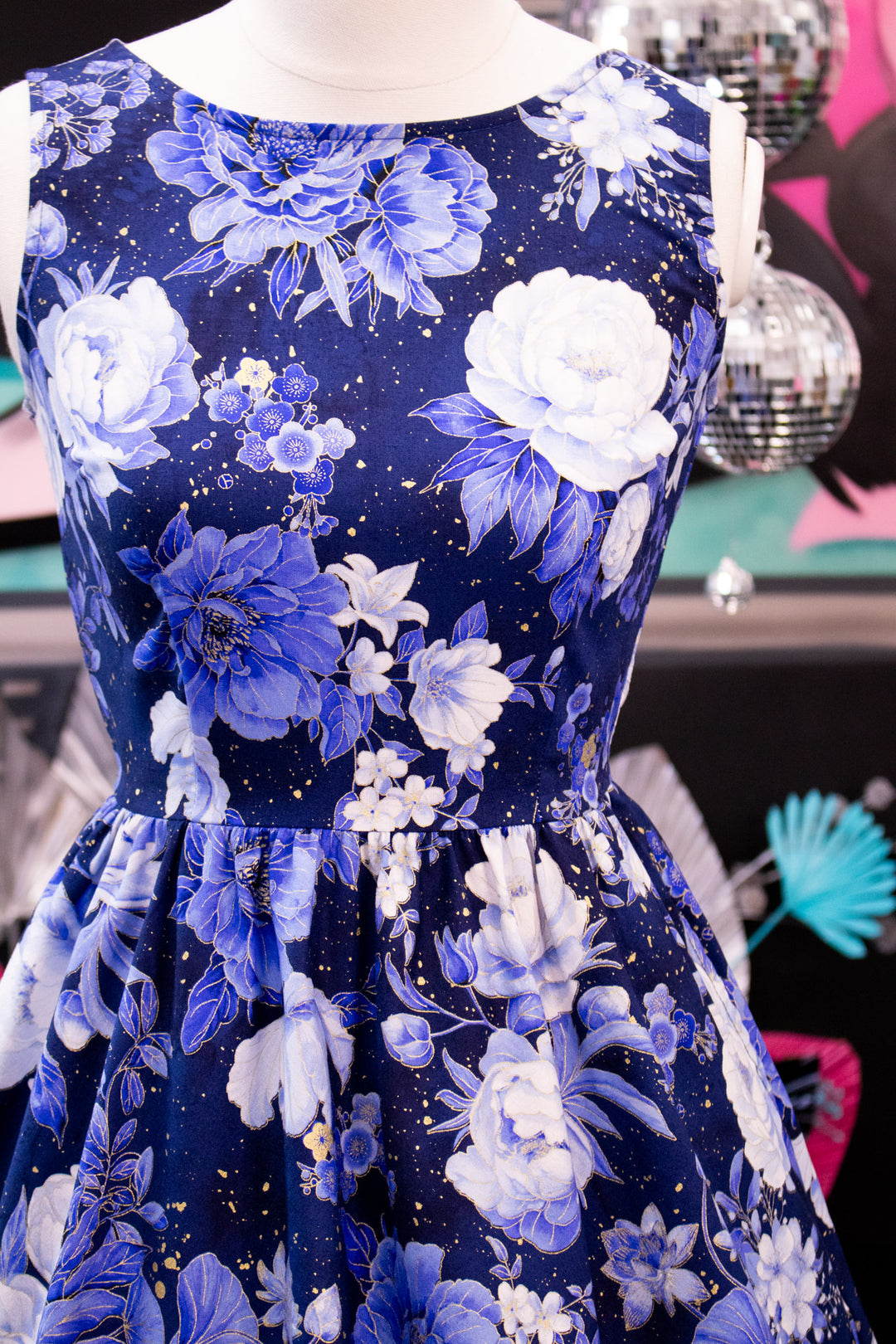 Metallic Blue Floral Vintage Dress