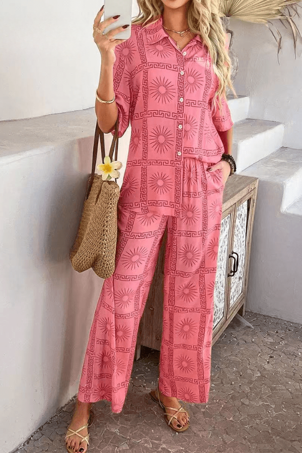 Turn heads this summer season with our two-piece shirt and pants set, designed to give you effortless holiday vibes from sunrise to sunset.