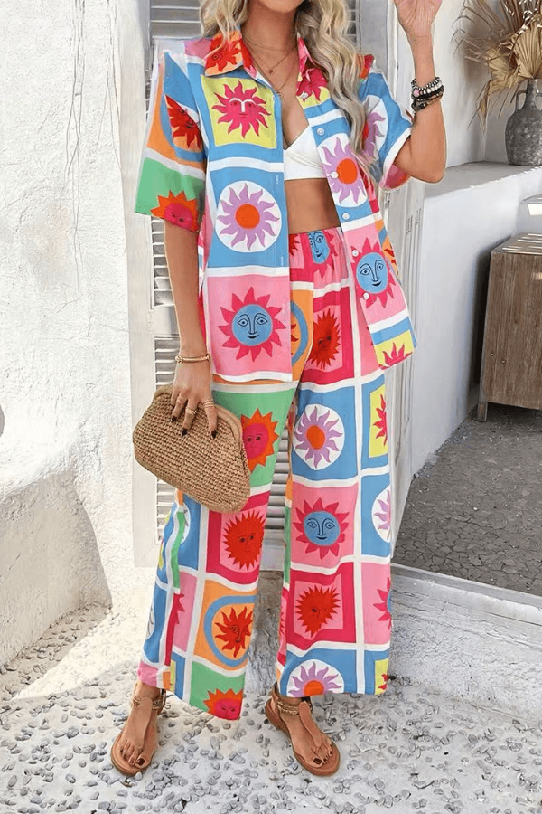 Turn heads this summer season with our two-piece shirt and pants set, designed to give you effortless holiday vibes from sunrise to sunset.