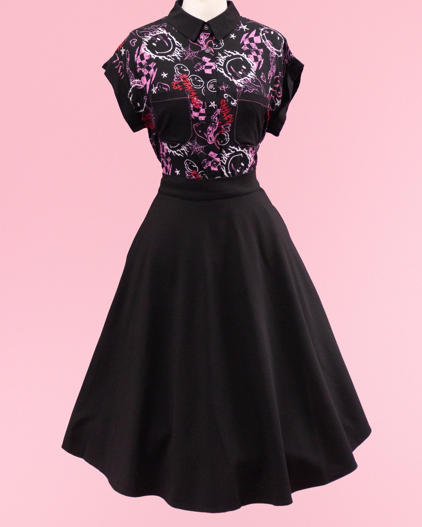 Check out the Charlotte: the perfect vintage style skirt! Made in our heavyweight stretch ponte, this circle skirt features large side pockets and a back zippered closure.