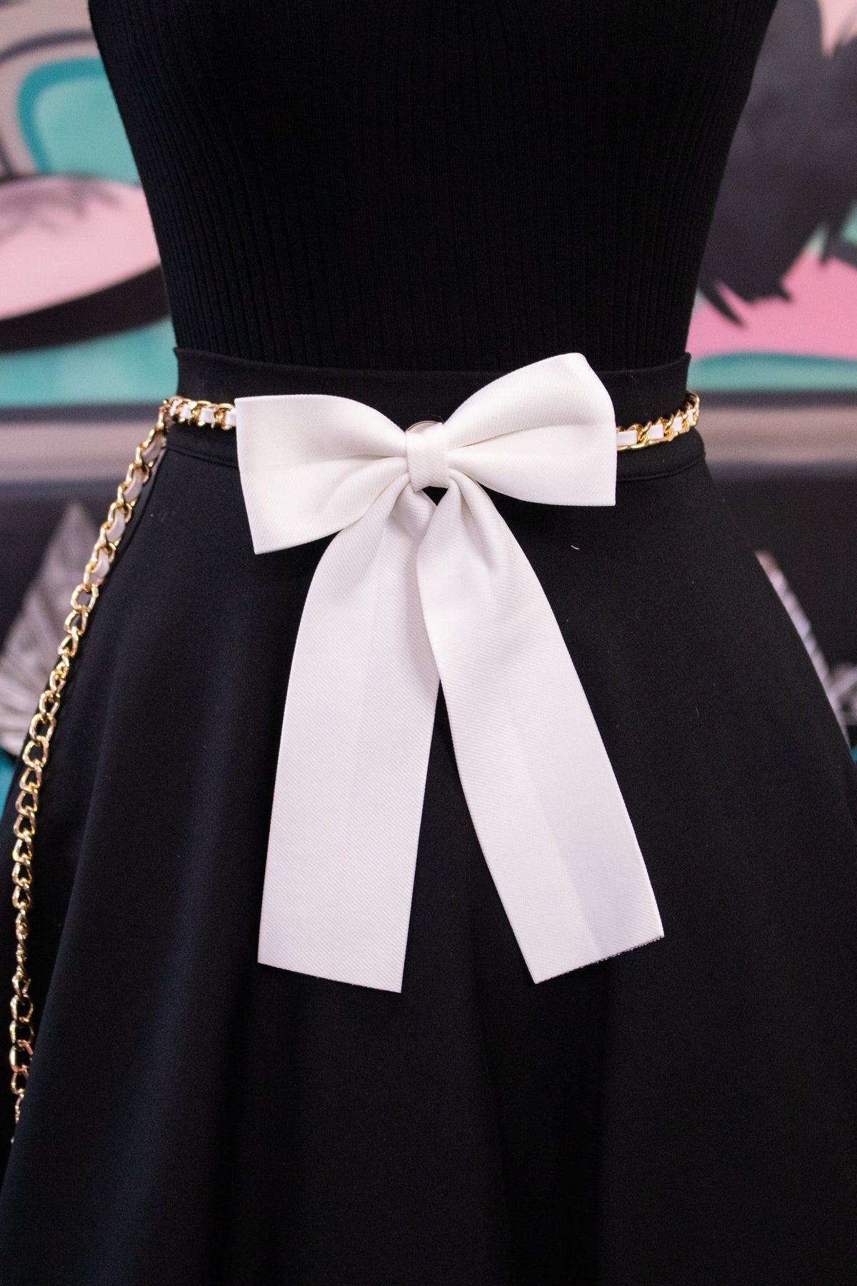 Refined and stylish, the Ribbon Chain Belt is designed to make an elegant impression. Featuring a charming bow detail and a slim profile, this belt adds a feminine flair to any ensemble. Made with durable iron and PU materials, it offers both structure and comfort. Whether styled with dresses or high-waisted pieces, this belt is a chic finishing touch to complete your look.